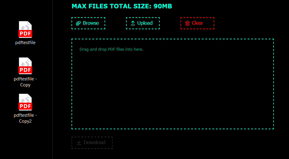 Can merge any amount of pdfs that total to 90 MBS.